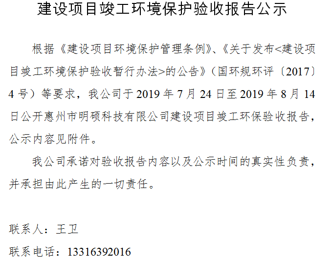 環(huán)保驗收報告公示|惠州環(huán)保公司|工廠環(huán)保自主驗收找綠維環(huán)保