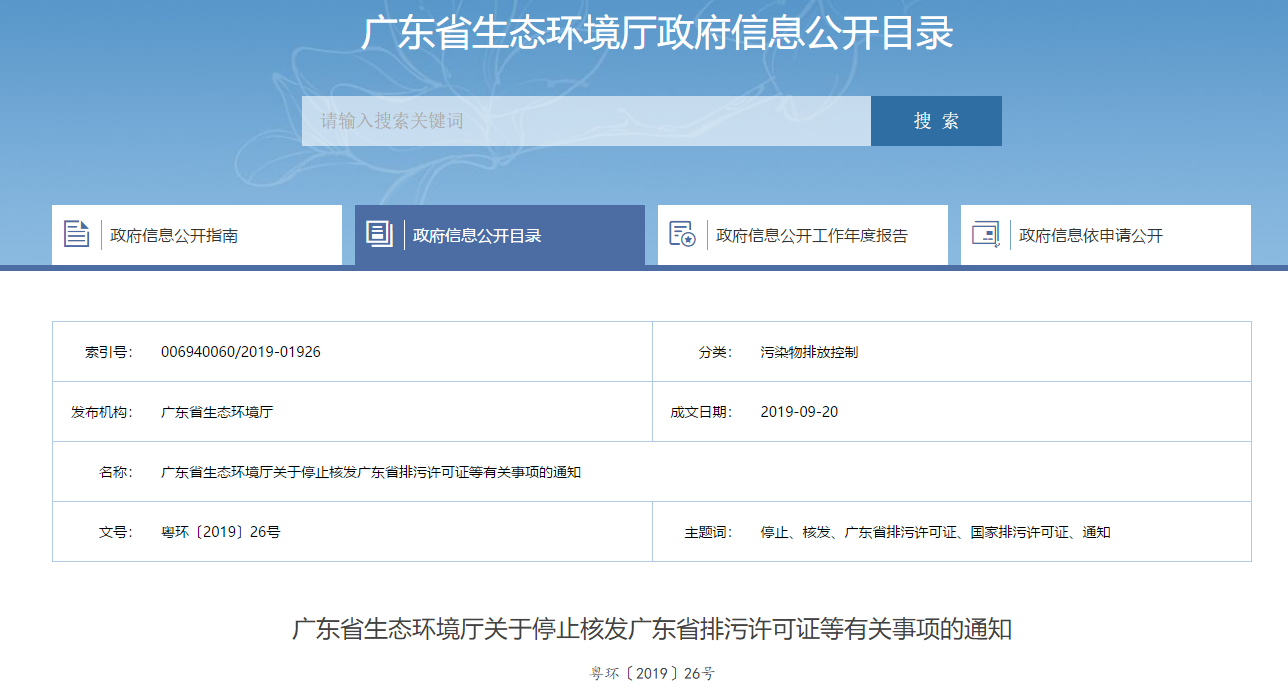 廣東省生態(tài)環(huán)境廳關(guān)于停止核發(fā)廣東省排污許可證等有關(guān)事項(xiàng)的通知